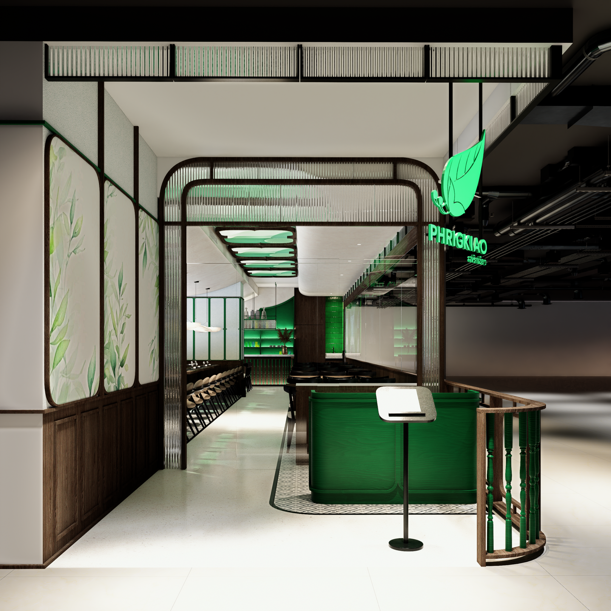 หากคุณกำลังมองหา บริษัทออกแบบภายใน ที่เชี่ยวชาญการดึงอัตลักษณ์แบรนด์มาสร้างพื้นที่จริง Living Inhabit ภูมิใจนำเสนอโปรเจกต์ ออกแบบตกแต่งภายใน ร้าน “พริกเขียว” (Phrigkiao) ร้านอาหารไทยฮาลาล ณ The Market Bangkok บนพื้นที่ 115 ตร.ม. ที่ผสมผสานความประณีตแบบไทยเข้ากับดีไซน์สากลอย่างลงตัว (Project Year 2026)